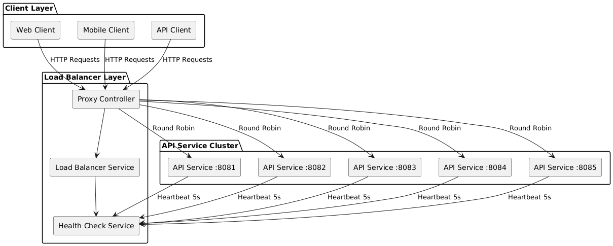 - Each API service operates on a unique port (8081–8085) and handles requests forwarded by the load balancer.