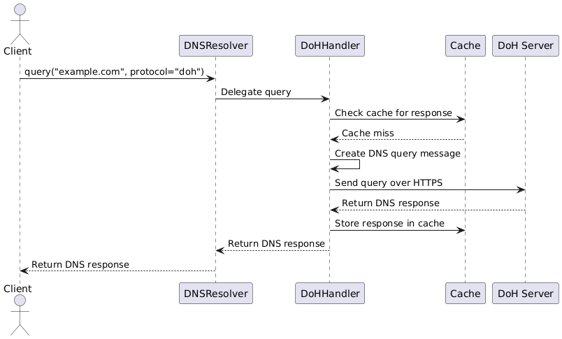 DNSProtocolHandlerabstract base class:- DoHHandler: Sends DNS queries over HTTPS (DoH) using
