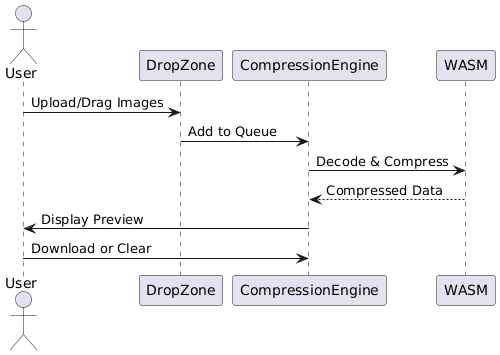 Compression Engine The core compression logic is powered by WebAssembly for near-native performance. The engine handles decoding, compressing, and encoding images using a set of WebAssembly-based codecs.
