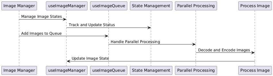 useImageManageranduseImageQueue) manage image states and processing queues, ensuring smooth, parallelized processing without blocking the UI.