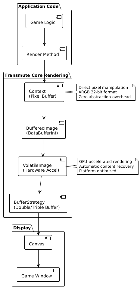 Named after the alchemical concept of transformation (and because "turning code into games" sounded way cooler than "yet another game engine"), Transmute Core is built for developers who want direct control over pixels, predictable performance, and a framework that stays out of your way.