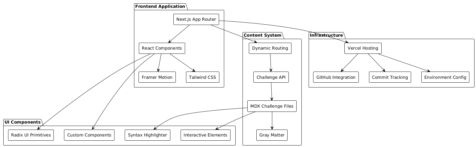 The heart of You Build It is its sophisticated challenge management system that transforms static MDX files into interactive learning experiences: